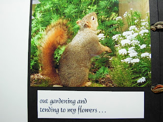 A funny thing happened while I was packing Grace's gift. I went through some of my photos to make cards and was smiling over some of my squirrel pictures. I was feeling rather bad because I had intended to be done in April, then May, then I verbally told her that I had hoped to have it waiting for her when she returned home from a trip in June, and here it was almost nearing the end of July! Anyway, I thought that I would make her a fun apology card/book with some of my photos. These photos aren't great either because I just snapped pictures of the book quickly so that I could share it with Mark. You know I love squirrels and for some reason, we both still chuckle about it and I thought you might enjoy it too.